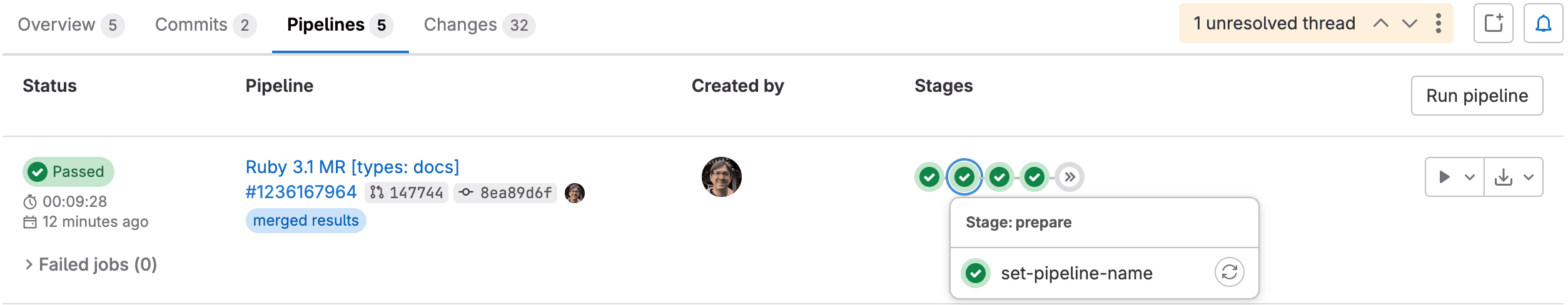 • Run pipeline name changed to New pipeline in GitLab 17.7.
